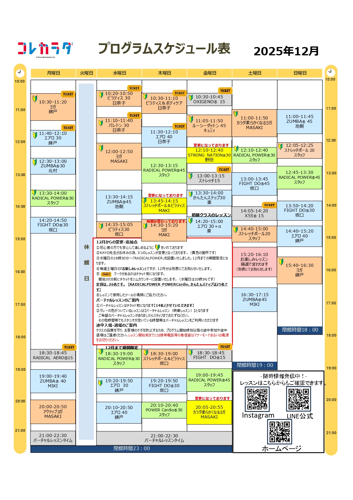 私たち、フィットネス&コミュニティ「コレカラダ」は、男女を問わず若い世代から高齢者までが健康活動を通したコミュニティづくりをサポートすることで、皆さまのココロを癒し心身ともに健康になることを目的に誕生しました。「コレカラダ」で新たに生まれるコミュニティ、そこから生まれるたくさんの笑顔が私たちの願いです。