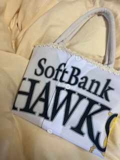ホークスのユニフォームで沢山バック🎒を作ってきました!ユニフォーム以外は全部百均で揃えているので安くすみます💝
