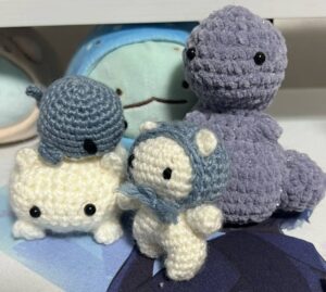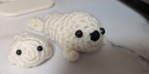 妹も多趣味で、最近は編み物にはまっているそうです。すごい!左のアザラシもらいました!アザラシ好きで…✨